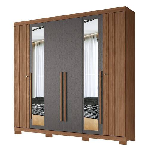 Guarda Roupa Casal Buriti Ripado 6 Portas com Espelho e Pés - Santos Andirá