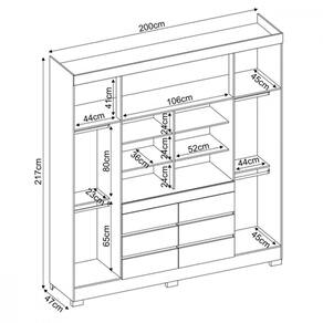 Dimensoes: Altura: 217 cm Largura: 200 cm Profundidade: 47 cm Peso: 121 kg