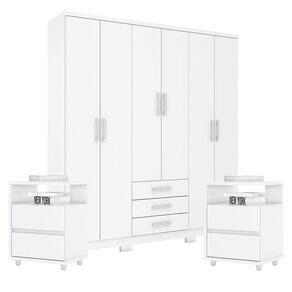 Guarda Roupa Casal Caju 6 Portas com Kit Mesa de Cabeceira Branco - Henn