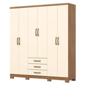 Guarda Roupa Casal Caju 6 Portas e Cômoda Ravenna Nature Off White - Henn