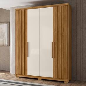 Guarda Roupa Casal Califórnia 4 Portas Ripado Freijó/off White - Moval Freijó/off White Guarda Roupa Casal Califórnia Ripado 4 Portas - Moval O Guarda Roupa Casal Califórnia Ripado 4 Portas é a escolha perfeita para quem busca funcionalidade e estilo. Com estrutura em MDP e pintura UV, este móvel é durável e elegante. Ele possui 4 portas, incluindo 2 com detalhes ripados em MDF, seu interior espaçoso conta com prateleiras, 3 gavetas com corrediças telescópicas e cabideiro, oferecendo diversas opções de organização. Os puxadores em MDF e os pés em PVC complementam o design moderno e sofisticado. ESPECIFICAÇÕES: - Estrutura em MDP - Pintura UV - 4 Portas sendo 2 portas com detalhe ripado em MDF - Dobradiças metálicas - Interna com prateleiras - 3 Gavetas - Corrediças telescópicas - Cabideiro - Puxadores em MDF - Pés em PVC