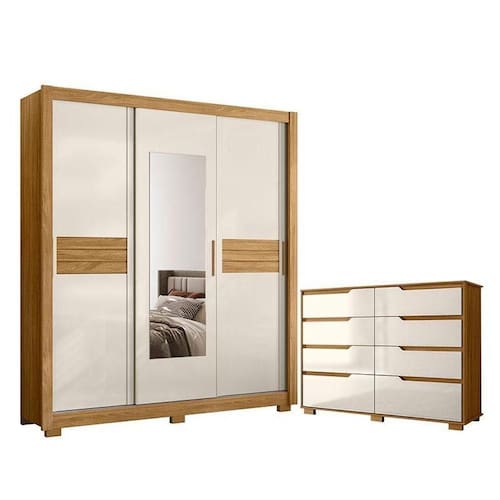 Organize seu quarto com elegância e o melhor custo benefício do mercado. Apresentamos o Guarda Roupa Casal Canadá e Cômoda Georgia fabricados pela Moval. Guarda Roupa com 03 portas deslizantes e 03 gavetas com corrediças telescópicas, espelhos inclusos, puxadores em MDF, cabideiro e calceiros em alumínio para melhor organização interna, sistema anti-empeno metálico, espaço ideal para roupas longas e pés em PVC. A cômoda possui 08 gavetas com corrediças telescópicas, gavetas com puxadores usinados e pés em PVC. Fabricado com materiais de alta qualidade que garante resistência e durabilidade ao produto. Confira mais detalhes e aproveite!
