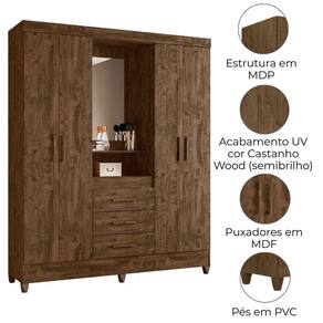 Moderno e versátil, o Guarda Roupa Casal Capri foi desenvolvido para otimizar espaços com eficiência. Estrutura em MDP (15/ 12 mm) e acabamento em pintura UV. Possui capela central com espelho e prateleira, portas com dobradiças metálicas, cabideiro interno (alumínio) e gavetas com corrediças metálicas. Produto com dupla opção de montagem: pés em PVC ou sapatas plásticas (2 mm) conforme preferência do cliente. Este produto será entregue em 03 volumes.
