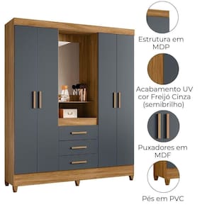 Moderno e versátil, o Guarda Roupa Casal Capri foi desenvolvido para otimizar espaços com eficiência. Estrutura em MDP (15/ 12 mm) e acabamento em pintura UV. Possui capela central com espelho e prateleira, portas com dobradiças metálicas, cabideiro interno (alumínio) e gavetas com corrediças metálicas. Produto com dupla opção de montagem: pés em PVC ou sapatas plásticas (2 mm) conforme preferência do cliente. Este produto será entregue em 03 volumes.