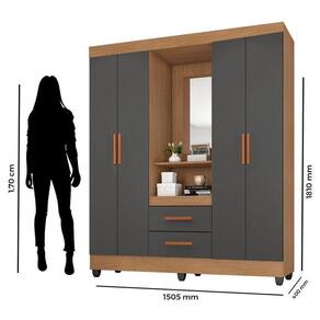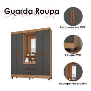 Guarda Roupa Casal Capela Ambiente Lite Nature Cinza Móveis Leão