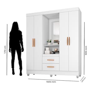 Guarda-Roupa Casal Capela da Móveis Leão, na cor Branco Brilho, ideal para quem busca elegância e funcionalidade. Possui ótimo espaço interno para organizar roupas e acessórios, com design moderno que valoriza o ambiente. Acabamento brilhante, resistente e fácil de limpar, perfeito para deixar o quarto mais bonito e organizado