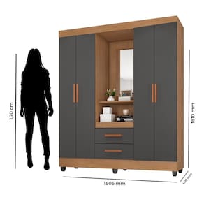 Guarda Roupa Casal Capela com Armário Multiuso Lite Nature Cinza - Móveis Leão