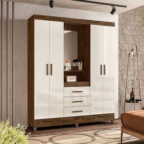 Guarda Roupa Casal Capelinha Ambiente Capri 4 Portas Castanho Wood Off White com Espelho - Moval