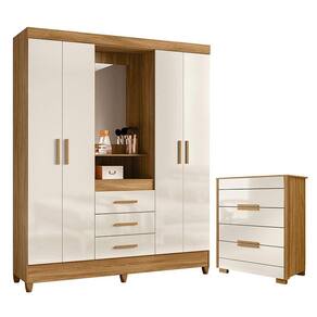 Guarda Roupa Casal Capelinha Capri e Cômoda Dhara Freijó Off White – Moval