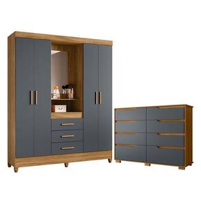 Guarda Roupa Casal Capelinha Capri e Cômoda Georgia Freijó Cinza Moval