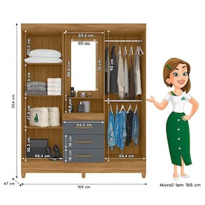 Guarda Roupa Casal Capelinha Capri e Cômoda MS913 Freijó Cinza – Moval