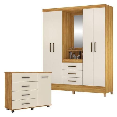 Guarda Roupa Casal Capelinha Pérsia com Cômoda Flora Cinamon Touch Off White - Demóbile