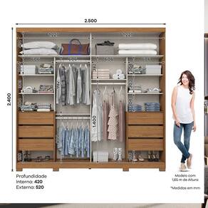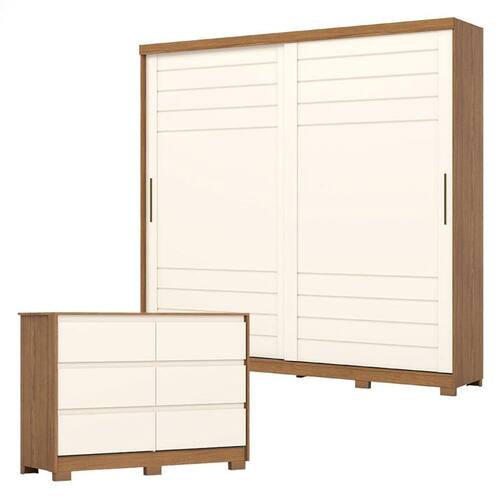 Guarda Roupa Casal Cayman e Cômoda Ravenna Nature Off White - Henn