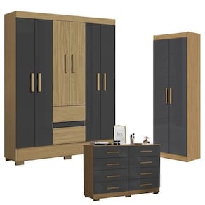 Guarda Roupa Casal Coimbra 2005138 com Armário Multiuso 2000191 e Cômoda 2014148 Atacama Grafite - Aramóveis