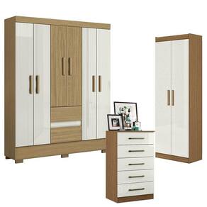 Guarda Roupa Casal Coimbra 2005138 com Armário Multiuso 2000191 e Cômoda 2014140 Atacama Off White - Aramóveis