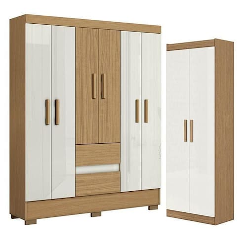 Buscando conjunto de guarda roupas e armário multiuso ideal para deixar o quarto mais moderno e prático? Com design simples e atemporal, apresentamos o Guarda Roupa Casal Coimbra e o Armário Multiuso 2000191 desenvolvidos pela Aramóveis, contam com amplo espaço interno para manter a organização das roupas, sapatos e outros pertences, confira e aproveite!