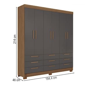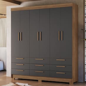 O(a) Guarda-Roupa Casal Colombo 6 Portas 9 Gavetas Jatoba/Grafite - Santos Andirá é produzido em MDF, MDP e HDF na escala de brilho Fosco, e possui um grau de dificuldade de montagem: Médio.