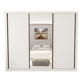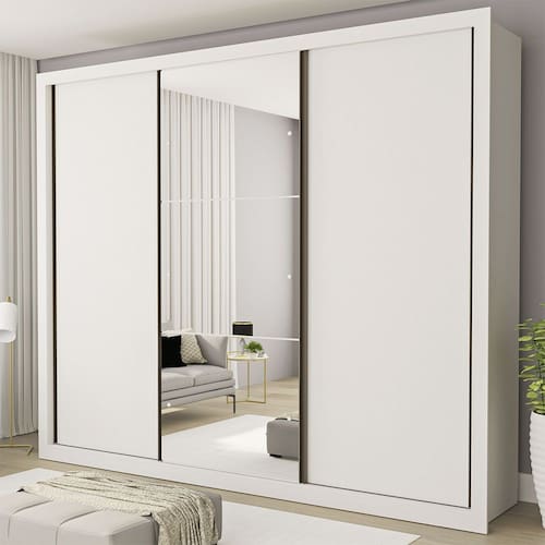 Características: Tipo de Guarda-roupa: Casal Ambiente Principal: Quarto Estilo: Moderno Material Principal: MDP Acabamento: Pintura Escala de Brilho: Brilhante Possui Portas: Sim Tipo de Porta: Correr Possui Gavetas: Sim Tipo de Gaveta: Interna Possui Calceiros: Sim Possui Cabideiros: 03 Quantidade de Portas: 03 Quantidade de Gavetas: 06 Quantidade de Prateleiras: 11 Formato do Espelho: Retangular Possui Prateleiras: Sim Quantidade de Espelhos: 03 Espelhos com Tamanhos Iguais Complexidade da Montagem: Alta: deve ser montado por um montador especializado Tipo de Puxador da Porta: Embutido Tipo de Puxador da Gaveta: Embutido Tipo de Fixação do Espelho: Parafusos Tipo de Corrediça da Gaveta: Metálica Telescópica Material do Puxador da Porta: Plástico Tipo de Dobradiça/Corrediça da Porta: Alumínio Possui Espelhos: Sim Necessita Montagem: Sim Possui Espaço para Vestidos Longos: Sim Sistema de Montagem: Parafusos e Minifix Espessura do Espelho: 3 mm Peso Máximo por Gaveta: 10 kg Peso Máximo por Prateleira: 5 kg Guarda-Roupa Suporta Até: 90 kg Origem do Produto: Nacional Gaveta com Chave: Não Possui Painel de TV: Não Gaveta com Divisores: Não Possui Espelho Interno: Não Possui Organizador de Gaveta: Não Possui Sapateira: Não Possui Pés: Não