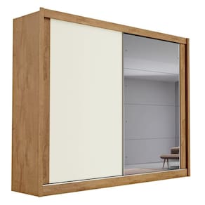 Guarda Roupa Casal com Espelho 2 Portas 4 Gavetas - Creta-Amêndoa/Off White - Móveis Europa