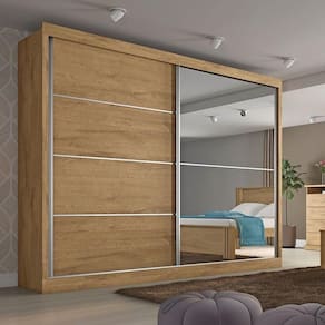 Guarda Roupa Casal com Espelho 2 Portas 4 Gavetas - Verona-Amêndoa - Made Marcs