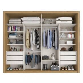 Características: Estrutura em MDP Contém espelho 2 Portas de correr 6 Gavetas Colmeias organizadoras Puxadores em MDF Trilho inferior de alumínio Trilho superior de plástico Sistema com rolamentos e freios Corrediças telescópicas Cabideiros metálicos Peso suportado pelo produto: 81 kg