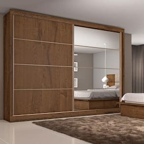 Guarda Roupa Casal com Espelho 2 Portas 6 Gavetas - Sevilha-Braúna - Made Marcs