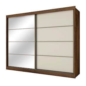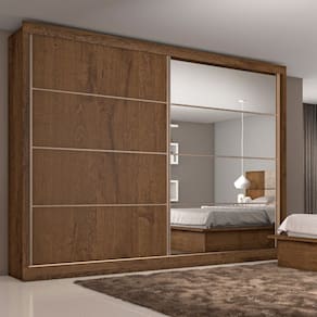 Características Material 100 MDF 2 Portas de correr Espelho 6 Gavetas 8 Prateleiras Corrediças telescópicas 2 Cabideiros em Alumínio 2 Calceiro em Alumínio