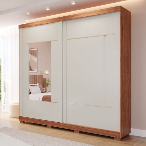 Guarda Roupa Casal com Espelho 2 Portas de Correr e P?s Em MDF Olivia Panan O Guarda Roupa Olivia Panan foi desenvolvido para oferecer praticidade, organiza??o e eleg?ncia ao quarto do casal. Com design moderno e funcional, ele combina espa?o interno bem distribu?do com acabamentos de qualidade, garantindo durabilidade e sofistica??o no ambiente. Com sua combina??o de beleza e funcionalidade, o Guarda Roupa Olivia ? a escolha certa para quem busca um m?vel dur?vel, pr?tico e elegante para compor o dormit?rio.