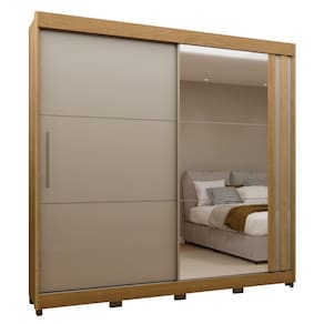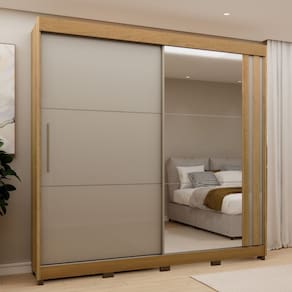 Guarda Roupa Casal com Espelho 2 Portas de Correr e Pes Em MDF Italia Luciane O Guarda Roupa Italia e produzido em MDF com acabamento UV, garantindo resistencia e otima durabilidade. Conta com portas com espelho, puxadores em aluminio e pes plasticos, que facilitam a limpeza do ambiente. Seu interno e bem dividido, com prateleiras e gavetas que proporcionam uma organizacao pratica de roupas, calcados e acessorios, sendo ideal para diferentes tamanhos de quarto.