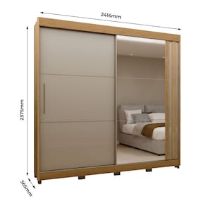 Caracteristicas: Material em MDF 2 Portas de correr 4 Gavetas 1 Espelho 2 Maleiro 2 Cabideiro 8 Nicho Corredica telescopica Puxadores em aluminio Acabamento pintura U.V Pes de plastico Gaveta Suporta ate 5kg distribuidos Prateleiras suporta ate 8kg distribuidos Cabideiro Suporta ate 8kg distribuidos Maleiro suporta ate 15kg distribuidos