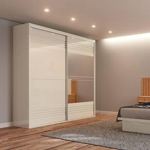 A qualidade desse guarda roupa com espelho também é sem igual, pois é fabricado 100% em MDF, com laterais e rodaforro engrossurados 40mm, que garantem o máximo de resistência e durabilidade com o melhor custo benefício! O grande diferencial está nas portas com sistema de correr com regulagem de altura e, ainda, nos freios que as impedem de bater bruscamente e protegem o produto por mais tempo. Já os detalhes ripados nas portas dão um toque de modernidade e deixa o quarto cheio de estilo.