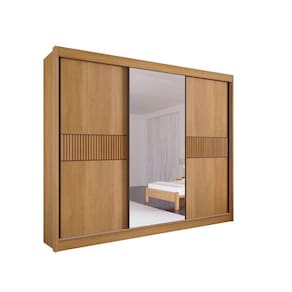 Guarda Roupa Casal com Espelho 3 Portas 6 Gavetas - Los Angeles Ripado-Cinamomo - Móveis D'Doro