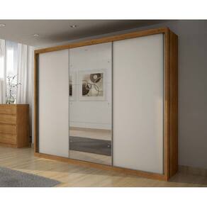 Guarda Roupa Casal com Espelho 3 Portas 6 Gavetas - Paradizzo Gold-Cumaru off white - Móveis Novo Horizonte
