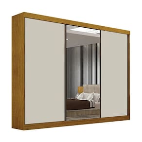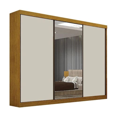 Guarda Roupa Casal com Espelho 3 Portas 6 Gavetas - São Paulo-Freijó/Off White - Leifer Móveis