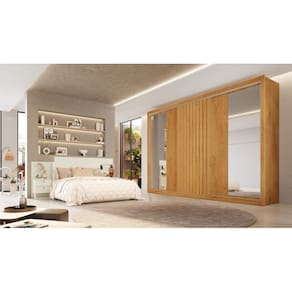 Guarda Roupa Casal Com Espelho 3 Portas 6 Gavetas - Vitoria - Móveis Europa   Roupeiro Vitoria com espelho é a união de qualidade, tamanho e beleza. Este Roupeiro é perfeito para seu espaço. Possui excelente espaço interno com 06 gavetas com corrediças telescópicas que permite maior aproveitamento interno e duas gavetas que possuem chaves para armazenar com segurança seus pertences. Possui compartimento para malas e roupas de cama. Prateleiras fixas e prateleiras removíveis para poder acomodar roupas longas. Possui também compartimento para calçados. Para maior durabilidade possui costas grossas parafusadas. Os trilhos inferior e superior são em alumínio. A porta central tem o designer ripado . As portas laterais possuem dois espelhos, Com os puxadores em perfil de alumínio. Possui roldanas com molas, nesse sistema a porta não sai do trilho.   Faz parte deste ambiente: Guarda Roupa Casal Com Espelho 3 Portas 6 Gavetas - Vitoria - Móveis Europa Obs: Objetos de decoração não inclusos.   Particularidades do guarda-roupa: Características: - Fabricado em 100% MDF  - Portas Dupla Face - Amplo espaço interno - Roldanas com sistema de amortecimento e regulagem  - Gavetas espaçosas  - Gavetas com corrediças telescópicas  - Modulação interna versátil - Portas com detalhe ripado real  - Costas parafusadas  - Puxadores em perfil de alumínio - Profundidade ideal para acomodar cabides  - Cabideiros resistentes em alumínio   Dimensões: Altura: 2,35 metros Largura: 2,75 metros Profundidade: 63,5 centímetros   Informações Importantes: -O envio desse produto é feito através de transportadora. -Produtos podem apresentar diferenças de tonalidades entre a foto na tela e o produto real, devido a calibração de cor de tela. -Limpar com flanela ou pano macio. Não utilizar álcool. Não utilizar produtos abrasivos ou corrosivos. -Nós prezamos pela qualidade da entrega em primeiro lugar, trabalhamos com transportadoras altamente selecionadas e os melhores materiais de embalagem. -A montagem é de total responsabilidade do comprador. Antes de comprar, verifique o espaço disponível para a montagem. -Certifique-se de que o produto caiba em elevadores e vãos de escadas, não fazemos içamentos. Quaisquer despesas deste tipo ficam a cargo do cliente -Garantia de 3 meses contra defeitos de fabricação.