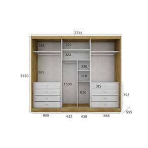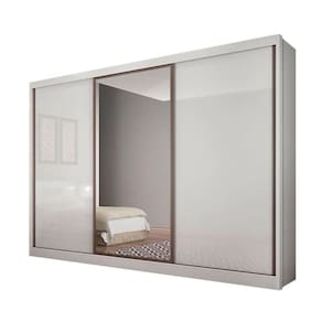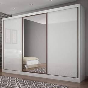 Guarda Roupa 100% MDF, gavetas com corrediças telescópicas, espaço para longo, interno ele e ela, trilho, puxadores, cabideiros e batentes em alumínio, roldanas com rolamento, rodizio superior duplo com freio, moldura da porta com espelho, perfil puxador e trilho inferior em alumínio bronze, 01 espelho inteiriço com película de segurança, colunado 25mm. Acabamento da Prateleira: Pintura Escala de Brilho da Prateleira: Fosco Possui Cabideiros: 04 Acabamento da Gaveta: Pintura Escala de Brilho da Gaveta: Fosco Possui Organizador de Gaveta: Não Acabamento da Porta: Pintura : 235 cm : 235 cm Ambiente: Quarto Complexidade da Montagem: Média: pode ser montado por mais de uma pessoa e/ou necessite de maior conhecimento para montagem Cr: Branco Cr: Branco Cr Predominante: Branco Escala de Brilho: Brilhante Espessura do Espelho: 3 mm Estilo: Moderno Formato do Espelho: Retangular Gaveta com Chave: Não Itens Inclusos: 1 Guarda Roupa e Manual de Montagem. : 274,4 cm : 274,4 cm Linha ou Coleção: Spazzio Material da Gaveta: MDF Material da Porta: MDF Material da Prateleira: MDF Material Principal: MDF Necessita Montagem: Sim Peso: 235,7 kg Peso Máximo por Gaveta: 5 kg Possui Calceiros: Não Possui Espelho: Sim Possui Gavetas: 08 Possui Pés: Não Possui Portas: 03 Possui Prateleiras: 06 : 55,5 cm : 55,5 cm Recomendações de Uso, Manutenção e Limpeza: Limpar com pano úmido. Sapatas Niveladoras: Não Sistema de Montagem: Parafusos, cavilhas e minifix. Tamanho: Tamanho do Espelho (A x L): 6 Peças: 87,5cmx71cm/ 6 Peças: 87,5cmx35,5cm Tipo de Corrediça da Gaveta: Metálica Telescópica Tipo de Dobradiça/Corrediça da Porta: Metálica Tipo de Gaveta: Interna : Correr Tipo de Puxador da Porta: Embutido