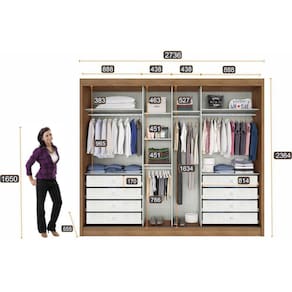 Guarda-Roupa Casal com Espelho 3 Portas 8 Gavetas Spazzio Yescasa Guarda-Roupa 100% MDF, gavetas com corrediças telescópicas, espaço para longo, interno ele e ela, trilho, puxadores, cabideiros e batentes em alumínio, roldanas com rolamento, rodizio superior duplo com freio, moldura da porta com espelho, perfil puxador e trilho inferior em alumínio bronze, kit de espelho parafusado, colunado 25 mm. Pesos e Dimensões Espessura do Espelho 3 mm Altura (cm) 236.4 cm Largura (cm) 273.6 cm Profundidade (cm) 55.5 cm Peso (kg) 266 kg Garantia Garantia 03 Meses Materiais e Acabamentos Material Principal MDF Material da Porta MDF Acabamento Pintura Acabamento da Gaveta Pintura Escala de Brilho Brilhante Escala de Brilho da Gaveta Fosco Acabamento da Porta Pintura Material da Gaveta MDF Tipo de Corrediça da Gaveta Metálica Telescópica Escala de Brilho da Porta Brilhante Tipo de Dobradiça/Corrediça da Porta Metálica Acabamento da Prateleira Pintura Escala de Brilho da Prateleira Fosco Material da Prateleira MDF Montagem Necessita Montagem Sim Complexidade da Montagem Média: pode ser montado por mais de uma pessoa e/ou necessite de maior conhecimento para montagem Sistema de Montagem Parafusos, cavilhas e minifix. Recomendações de Uso, Manutenção e Limpeza Limpar com pano úmido. Características Tipo de Porta Correr Tipo de Gaveta Interna Marca Espresso Móveis Possui Prateleiras Sim Possui Portas Sim Possui Pés Não Possui Iluminação Não Possui Gavetas Sim Linha ou Coleção Spazzio De Canto Não Gaveta com Chave Não Estilo Moderno Possui Organizador de Gaveta Não Sapatas Niveladoras Não Possui Capelinha Não Possui Espelho Interno Não Possui Sapateira Não Gaveta com Divisores Não Cor do Produto Canela Formato do Espelho Retangular Peso Máximo por Gaveta 5 kg Tipo de Puxador da Gaveta Externo Tipo de Puxador da Porta Embutido Tipo de Guarda-roupa Casal Possui Calceiros Não Possui Cabideiros 04 Possui Espelhos Sim Quantidade de Espelhos 03 Espelhos com Tamanhos Iguais Possui Espaço para Vestidos Longos Sim Origem do Produto Nacional Quantidade de Portas 3 Possui Gancho Não Ambiente Quarto Cor Predominante Marrom Cor da Porta Marrom Quantidade de Prateleiras 6 Cor Canela Quantidade de Gavetas 8 Itens Inclusos Itens Inclusos 1 Guarda Roupa e Manual de Montagem
