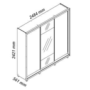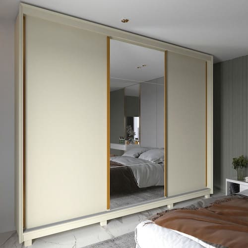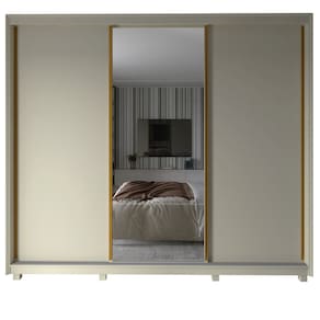 Guarda Roupa Casal com Espelho 3 Portas de Correr com Pes MDF Platinum Gelius - Off White