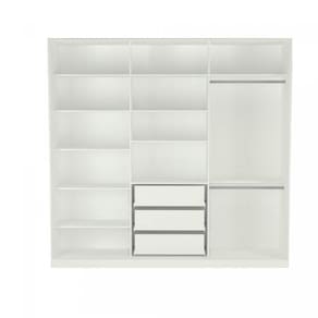 Este Guarda Roupa com Espelho da Nova Mobile possui 3 Portas de correr, e 3 gavetas interna, e amplo espaço interno. Móveis com design contemporâneo e cores diferenciadas que se harmonizam facilmente com todos os estilos de ambientes. Produto com alta resistência desenvolvidos 100% em MDF, com o objetivo de atender todas as suas necessidades. Acabamento da Prateleira: Pintura Texturizada UV Escala de Brilho da Prateleira: Fosco Possui Cabideiros: 02 Acabamento da Gaveta: Pintura Texturizada UV Escala de Brilho da Gaveta: Fosco Possui Organizador de Gaveta: Não Acabamento da Porta: Pintura Texturizada UV Escala de Brilho da Porta: Fosco Acabamento Externo: Pintura UV Texturizada Altura do Espelho: cm Capelinha: Não Com Calceiro: Não Com Ganchos: Não Com Iluminação: Não Com Painel de TV: Não Com Sapateira: Não Complexidade da Montagem: Média: pode ser montado por mais de uma pessoa e/ou necessite de maior conhecimento para montagem Cor: Branco Cor do Produto: Branco Cor Interna: Branco De Canto: Não Escala de Brilho: Fosco Espaço para Vestidos Longos: Não Espelho Interno: Não Espessura do Espelho: 3 mm Gaveta com Chave: Não Gaveta com Divisores: Não Gaveta(s) com Chave(s): Não Itens Inclusos: 1 Guarda Roupa e Manual de Montagem Itens Inclusos: 1 Guarda Roupa e Manual de Montagem Largura do Espelho: cm Linha ou Coleção: Econômica Manual de Montagem e Instalação: https://cdn2.madeiramadeira.com.br/atributo/nova-mobile/877414-504177-rc3003-23-4-manual-montagem.pdf Material da Gaveta: MDF Material da Porta: MDF Material da Prateleira: MDF Material Principal: MDF Necessita Montagem: Sim Origem do Produto: Nacional Peso: 179,07 kg Peso Máximo por Gaveta: 5 kg Peso Máximo por Prateleira: 15 kg Possui Calceiros: Não Possui Espelho: Sim Possui Pés: Não Possui Portas: 03 Possui Prateleiras: 10 Recomendações de Uso, Manutenção e Limpeza: Para a limpeza do móvel utilizar uma flanela seca. Sistema de Montagem: Parafusos, cavilhas e minifix. Tipo de Corrediça da Gaveta: Metálica Telescópica Tipo de Dobradiça/Corrediça da Porta: Alumínio Tipo de Fixação do Espelho: Parafusos Tipo de Gaveta: Interna Tipo de Guarda-Roupa: Casal Tipo de Puxador da Porta: Embutido