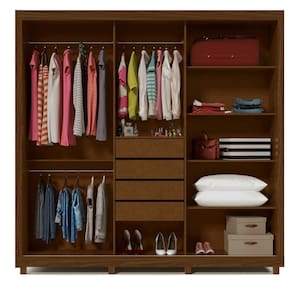 Características: Estrutura em MDP Porta com ripas autênticas 4 Gavetas com corrediças telescópicas Prateleiras para melhor organização Amplo espaço interno 3 tubos cabideiros para maior comodidade Produto com acabamento atóxico