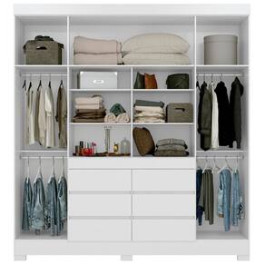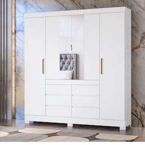 O Guarda Roupa Casal Cádis Demóbile é um modelo com design moderno e visual diferenciado, ótima capacidade de acomodação de roupas devido à disposição excelente de suas prateleiras, espelhos centrais de série, portas centrais com puxadores em alumínio. As seis gavetas externas com deslize perfeito, ótimo aproveitamento interno e profundidade ideal. Contem pés em PVC de série que facilitam a limpeza do piso próximo ao produto.