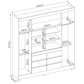 Dimensões: Altura: 217 cm Largura: 200 cm Profundidade: 47 cm Peso: 121 kg