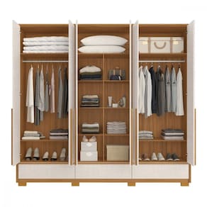 Caracteristicas: Material em MDF Espelho 6 Portas 3 Gavetas 6 Prateleiras Corredicas telescopicas Pintura U.V Acabamento Fosco Puxador em MDF Pes em Plastico Prateleiras que suportam ate 5kg Prateleiras que suportam ate 8kg Gavetas que suportam ate 4kg