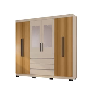 Guarda Roupa Casal com Espelho 6 Portas 4 Gavetas e Pés Manuela Damulti O Guarda-Roupa Manuela foi desenvolvido para quem busca funcionalidade, organização e sofisticação no quarto. Com 6 portas de bater e 4 gavetas internas, o modelo oferece amplo espaço para acomodar roupas, acessórios e demais pertences de forma organizada. Conta ainda com cabideiro metálico resistente, ideal para peças que precisam ficar sempre bem conservadas. Suas prateleiras internas proporcionam uma melhor divisão do espaço, garantindo funcionalidade no dia a dia. Além disso, os espelhos nas portas agregam elegância ao design e contribuem para ampliar a sensação de espaço no ambiente. Uma escolha inteligente para quem deseja unir organização, durabilidade e estilo em um único móvel.