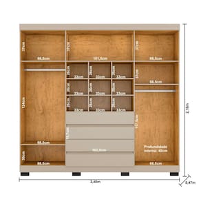 Dimensões: Altura: 218 cm Largura: 240 cm Profundidade: 47 cm Peso: 145,10 kg