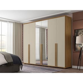 O Roupeiro Estrela – Rv Móveis é uma ótima opção em requinte e beleza para organizar seus objetos e roupas.Dimensões do produto montado:Altura: 235 cmLargura: 271 cmProfundidade: 58 cmObservações:– Moldura de 25 mm– 04 Gavetas com corrediças telescópicas– 05 Cabideiros em aluminio– 01 Prateleira– 08 Nichos internos– Acabamento interno na cor do produto– 03 Maleiros– 02 Portas centrais com espelho– 10 Pés– Puxadores em MDFMarca: RV MóveisModelo: EstrelaReferência: CD0714NTWATENÇÃO: Não nos responsabilizamos pela montagem deste produto. Aconselhamos a contratação de um profissional.
