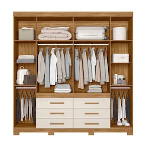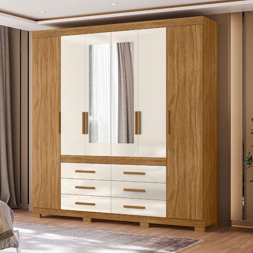 Caracteristicas: Espelho Cabideiro e calceiro em aluminio Material da estrutura em MDP Portas em MDP Puxadores em MDF 6 Gavetas Corredicas telescopicas Excelente espaco interno para auxiliar na organizacao Gavetas e prateleiras suportam peso de ate 6kg