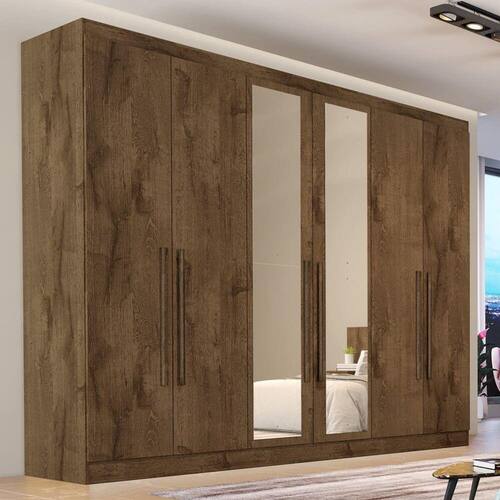 Guarda Roupa Casal com Espelho 6 Portas 6 Gavetas - Oslo-Braúna - Made Marcs