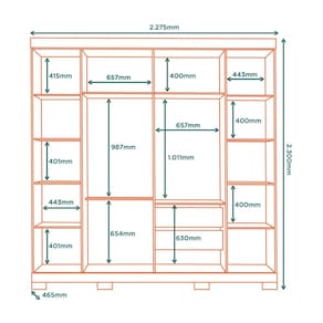 Guarda Roupa Casal com Espelho 6 Portas e Pés Bogotá Visão Móveis, Bogotá é a escolha perfeita para casais que desejam unir organização e elegância. Com suas seis portas, três cabideiros, duas gavetas espaçosas e diversas prateleiras, ele oferece a versatilidade necessária para que você organize seus pertences da maneira que preferir. A divisão interna e as medidas foram cuidadosamente planejadas para atender às demandas do dia a dia. Características: Estrutura: MDP 6 Portas 2 Gavetas Internas Pintura Estilo Ripado Espelhos inclusos Cabideiros em alumínio Corrediças metálicas Puxadores ABS Pés inclusos Peso suportado por prateleira: 8kg Peso suportado por gavetas: 3kg Dimensões: Altura: 230 cm Largura: 227,5 cm Profundidade: 46,5 cm Peso: 156,91 kg Garantia do fornecedor de 3 meses