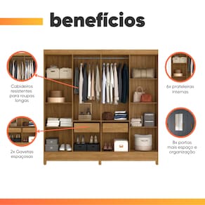 ITENS INCLUSOS: 1 Guarda Roupa, 1 Manual de montagem, 1 Kit Parafusos